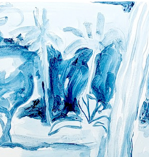 Des petits poissons rouges voguent au-dessus de la plantation, ils représentent la mer, caché au fond du tableau.